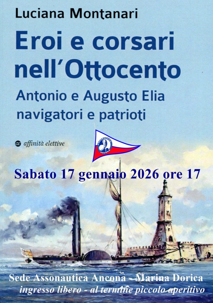 Sabato 17 gennaio alle ore 17 presso la sede dell’Assonautica di Ancona la Prof.ssa Luciana Montanari, autrice, presenterà il libro “Eroi e corsari nell’ottocento” che mostra uno spaccato della Ancona ottocentesca e risorgimentale attraverso le vicende di Antonio ed Augusto Elia, padre e figlio. Due nomi familiari, ma sicuramente due personaggi poco noti alla maggioranza di noi.