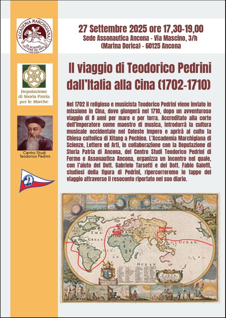 L’Assonautica di Ancona ospita con piacere nella loro sede questo evento dell’Accademia Marchigiana, dedicato ad uno dei vari “esploratori” marchigiani che nei secoli scorsi hanno preso la via dell’Oriente. Come visibile nella locandina, il personaggio sarà presentato da due Studiosi che attraverso lunghe ricerche sui documenti storici hanno ricostruito, e presentano per la prima volta, le vicende straordinarie di questo nostro conterraneo.