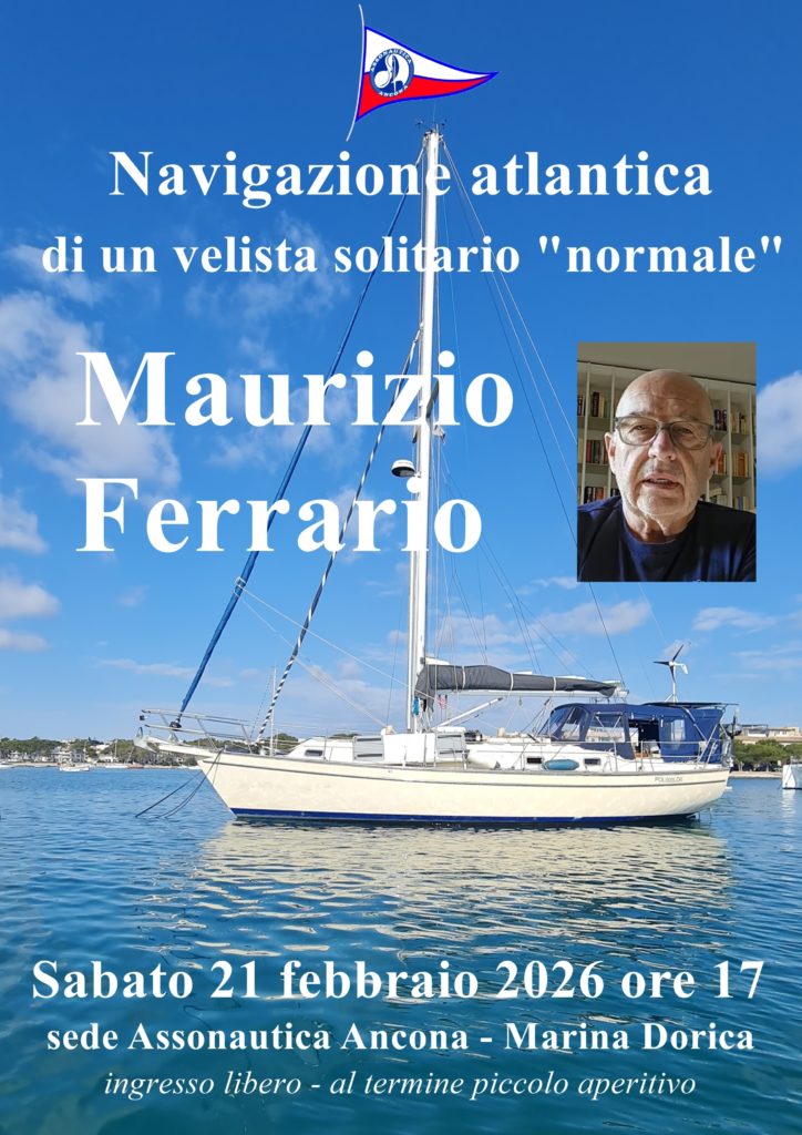 Maurizio Ferrario, di passaggio con la sua barca nel nostro Marina, sarà ospite presso la sede Assonautica di Ancona SABATO 21 febbraio alle ore 17 e ci racconterà le sue esperienze di navigazione, anche in Atlantico in solitario, dal punto di vista non di uno specialista o di un velista di lunga esperienza, ma da diportista come potrebbe essere ciascuno di noi. Trucchi, errori, esperienze, tutto quello che ha accumulato, e trasmesso con vari filmati nel suo canale youtube, e che potrebbe essere utile nella gestione delle nostre “imprese” a piccolo come a lungo raggio. Perché poi si comincia a navigare davanti al porto, ma non si sa mai dove la passione alla fine ci può portare…